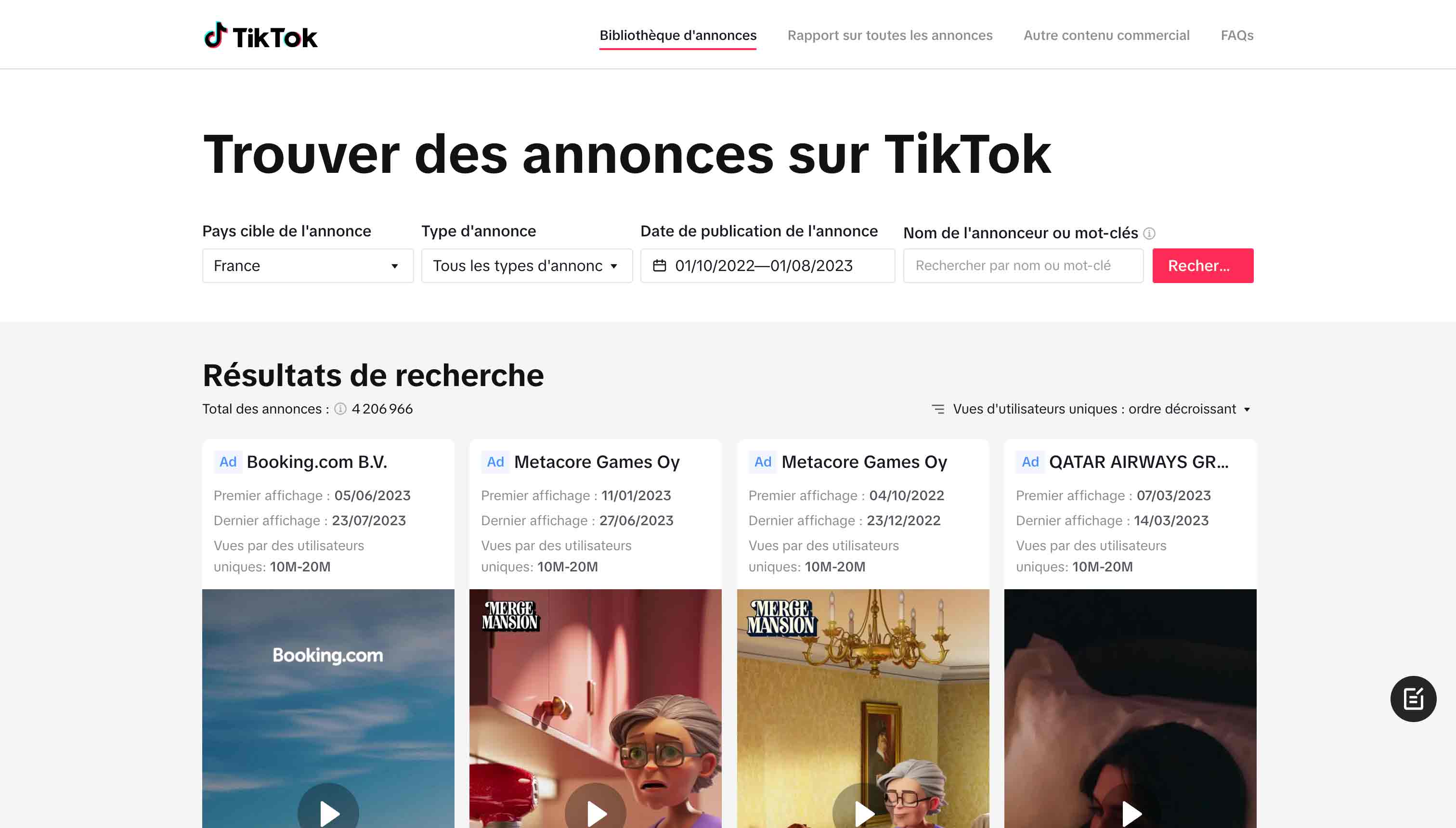 Comment rechercher et consulter dans la bibliothèque publicitaire TikTok ?